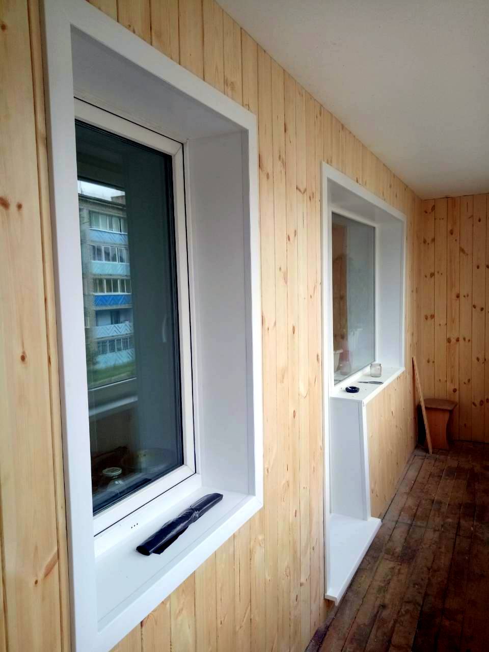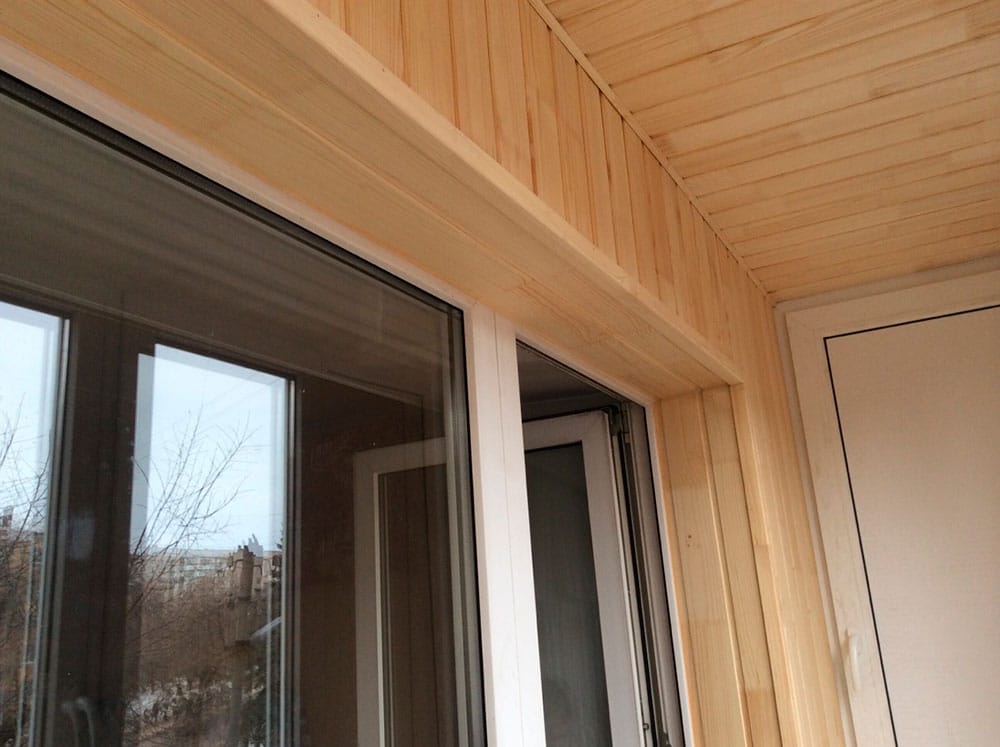Как правило, если отделка потолка балкона или лоджии осуществляется пвх-панелями белого цвета, то и приоконные откосы балконного блока тоже выполняются этими панелями.